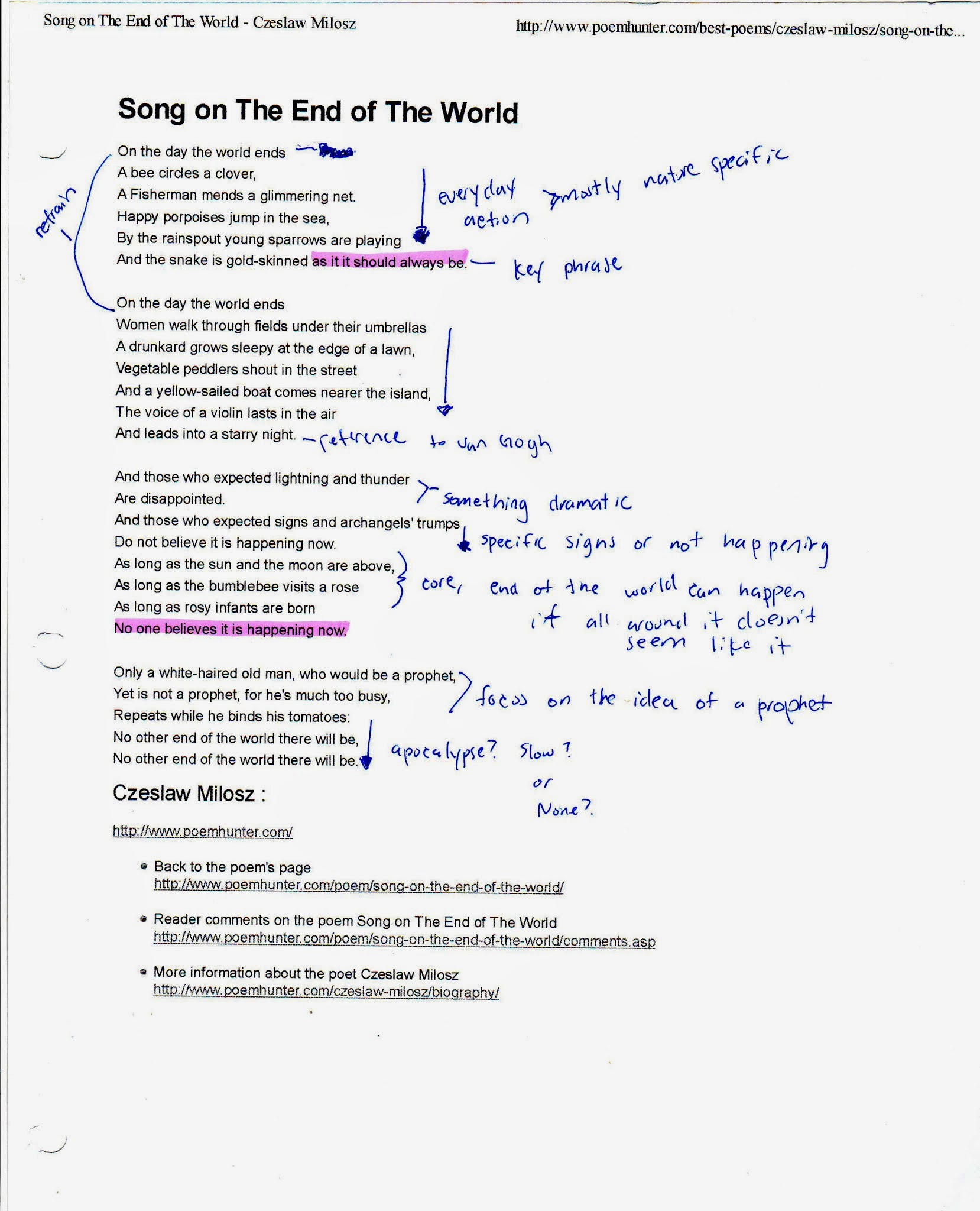 Original poem reprinted online here: "Song on The End of the World" by Czeslaw Milosz